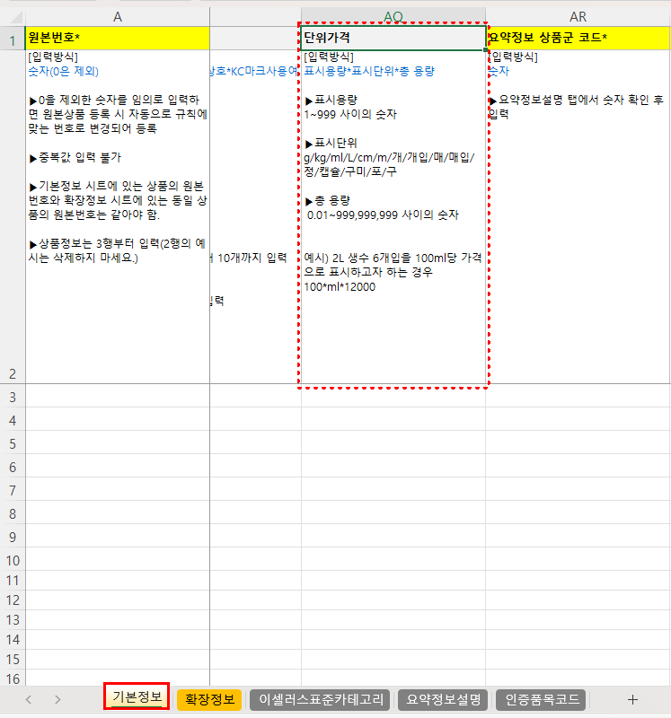- AQ열 : 단위가격 항목 추가